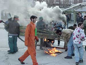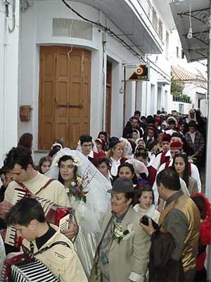 dresses or carnival costumes hang around the village teasing other